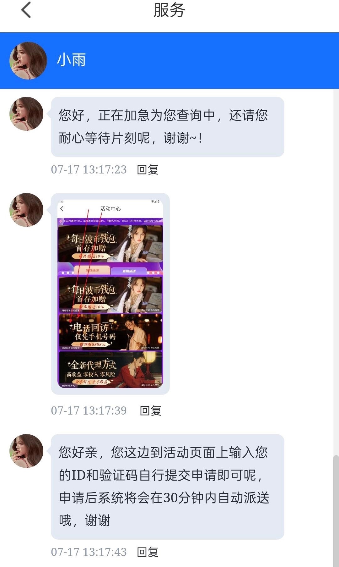有充值过的兄弟可以去活动中心申请一下看看在不在回访名单