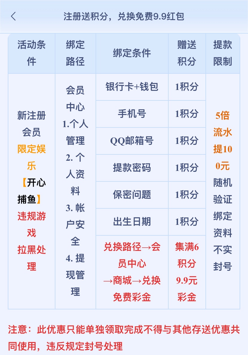 注册绑定资料在商城兑换彩金,5倍流水,限开心捕鱼,限100提现,收不到邮箱验证码可能是在垃圾邮箱里