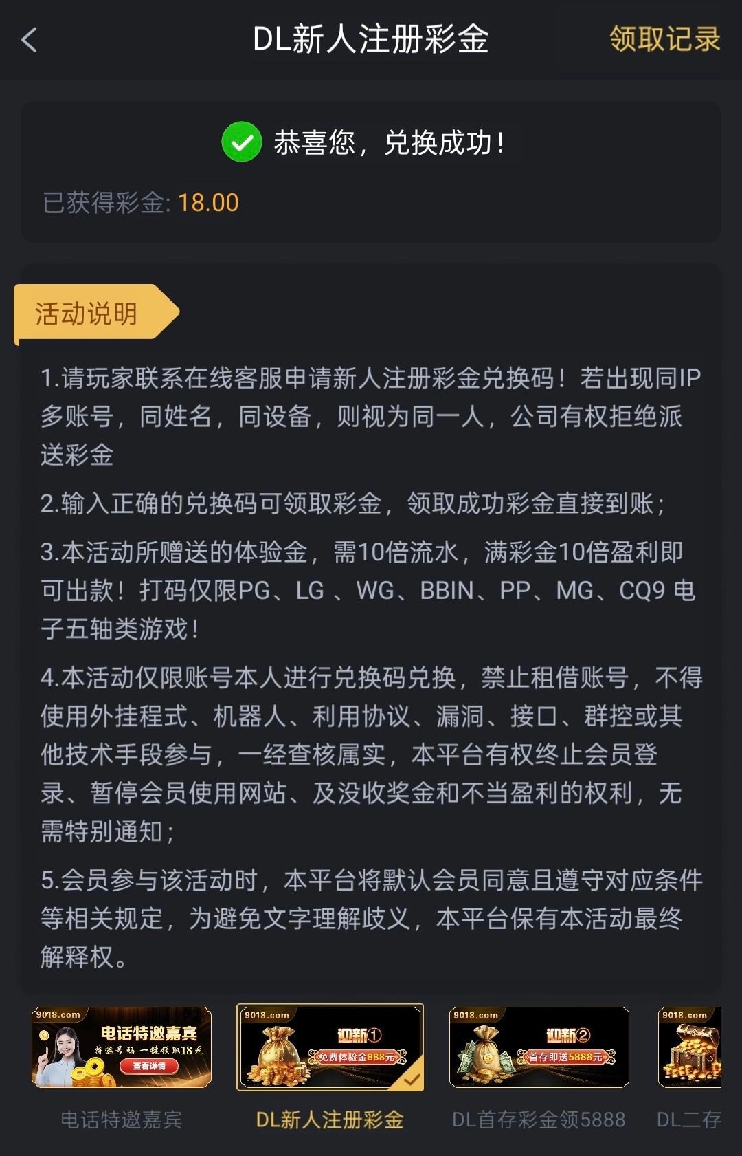 联系客服碰瓷看看自己是不是特邀,是特邀才给兑换码兑换彩金