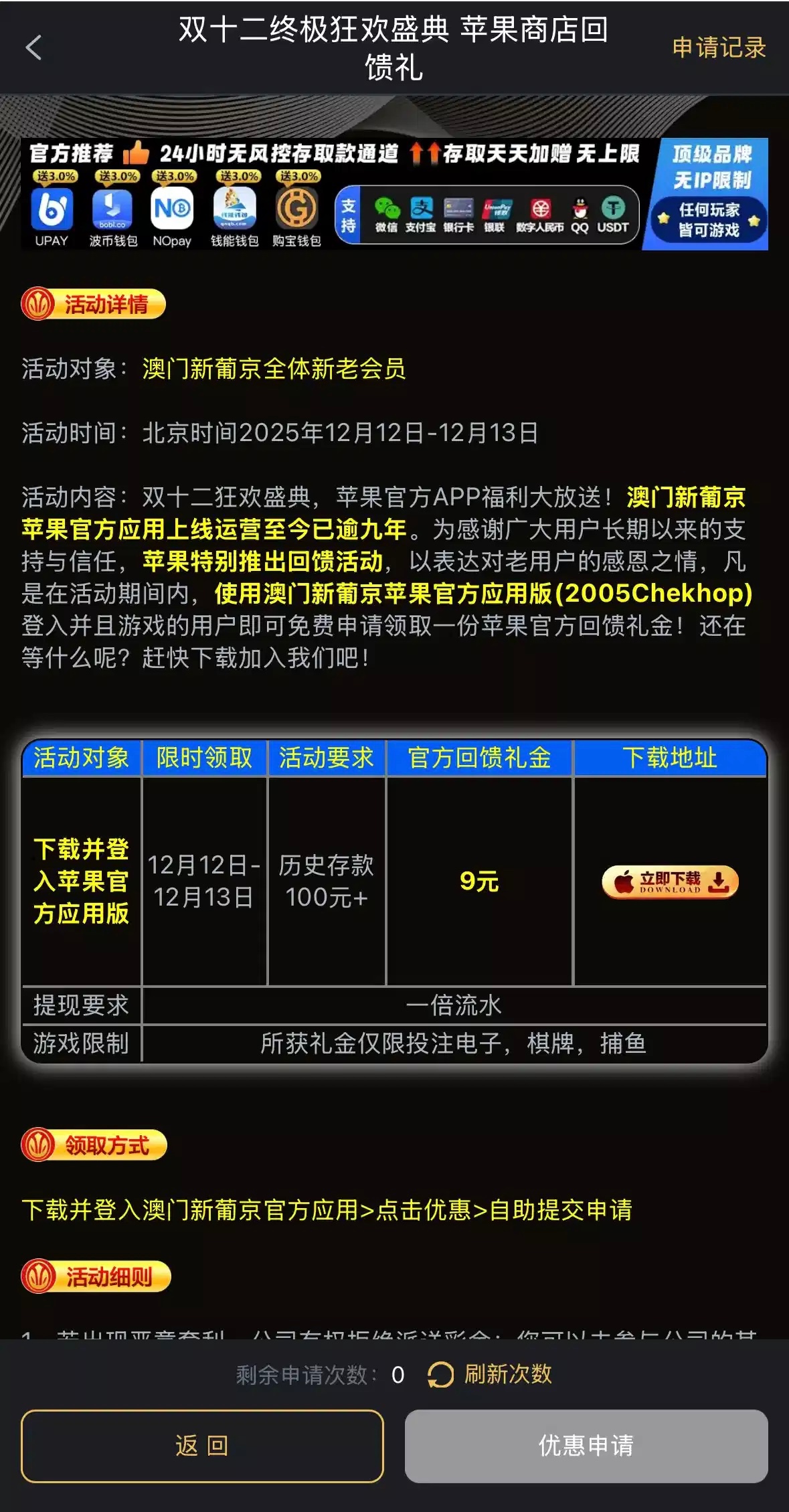 要历史充值过100以上要苹果手机才可以申请